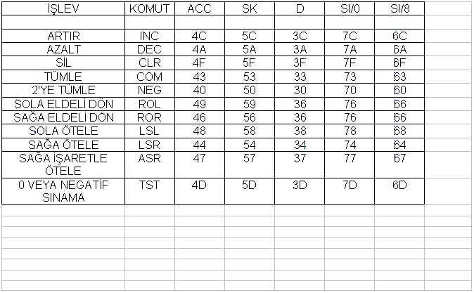 Bağıl Adresleme : Bağıl Adresleme sadece dallanma buyrukları için geçerlidir. Dallanma ileri ve geri yönde yapılabilir. Bu nedenle ileri dallanmalar $00-$7F ve geri dallanmalar $FF-$80 arasında kalır.